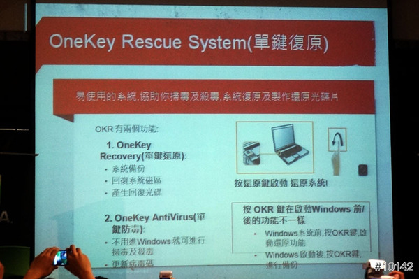 ▲而Y580的主要功能與特點,先從系統要重灌的狀況來說,Y580有單鍵復原系統,掃毐與系統還原一鍵完成;