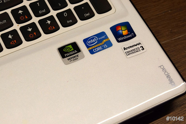 ▲置腕處右側則一樣是NVIDIA® GeForce® withCUDA貼紙、Intel Core系列處理器、Windows7、Lenovo EE3技術的規格貼紙