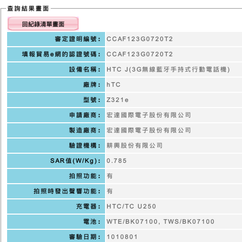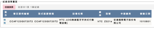 ▲ NCC 認證網頁上發現了 hTC J 通過認證的訊息。(來源:Ncc)