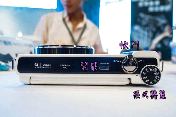 如果想要喚醒熟睡中的貓熊葛格該怎麼做咧?各位有沒有看到那個 on/off 啊? 只要有按時餵他們吃飽飯充滿電力,按下這個按鈕他們不管多累都會立刻醒過來,好聽話哦乖♥ 啊他們頭頂的耳朵上面寫了一堆英文字 P、Tv、M、A、SCN,那是做甚麼用的啊? 原來是 G1 內建了很多模式場景可以用,喜歡哪個模式就可以直接擰他們的耳朵就會乖乖換成那模式了(喂~ 動保團體表示..) 至於想要拍照時就按下他們頭頂閃亮亮的按鈕就可以輕鬆捕捉住美好的一刻囉 :D