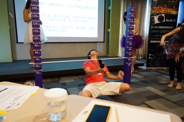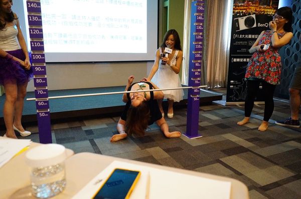 ▲比賽一路持續到60公分等級,到這階段的挑戰者中也只剩下一位男生,看看我們小組長都已經快貼到地板上了,不過也許柔軟度本來就不是男生的強項吧,歷經了幾次失敗它還是沒能挑戰成功,真是令人惋惜!