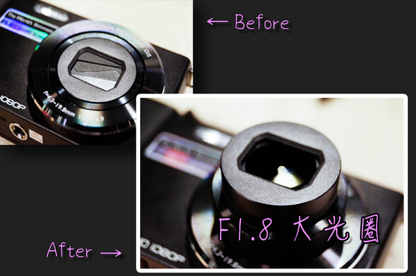 ▲讓我們請貓熊葛格跟黑熊底迪一起出場和大家見面,兩款的正面鏡頭外圍和握把的部分都是黑色的,大大眼睛外圍的純黑配色讓白色款的 G1 像極了貓熊的黑眼圈。由黑熊底迪的握把可以看到是皮革材質的,這樣才比較有摩擦拿起來更省力而且又很有質感。兩台 G1 的右下角都分別標註了 F1.8 大光圈,這可是代表著他們都是大眼娃兒呢,就算光線昏暗也不擔心拍出黑壓壓的照片了:D