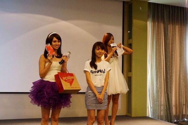▲雖然趣味競賽沒能得到獎品,不過主辦單位還有準備了有獎徵答活動,瞧 ShowGirl 手上的大袋子裡裝了很多獎品呢!