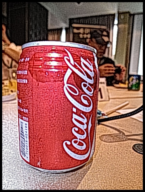 ▲用魚眼狀態看到的景象,原本就很短肥的可口可樂在黑熊底迪的眼裡看起來更渾圓可愛了,