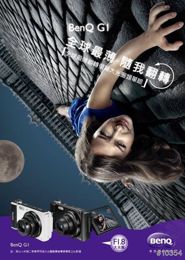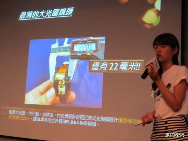 活動開始由BenQ 行銷企劃Alice從規格面觀為在場的各位介紹G1。由本相機的海報「全球最薄 隨我翻轉」知道,本機主打最輕薄的可翻轉螢幕相機。這點正呼應了我前言需求。常用一般相機或手機自拍的朋友,一定對這個功能有深切的渴望,有了翻轉螢幕,你不再把你合拍的朋友切邊了,你不再為了取景做出超人般的動作,輕薄的機身也讓你更願意將它帶出門。