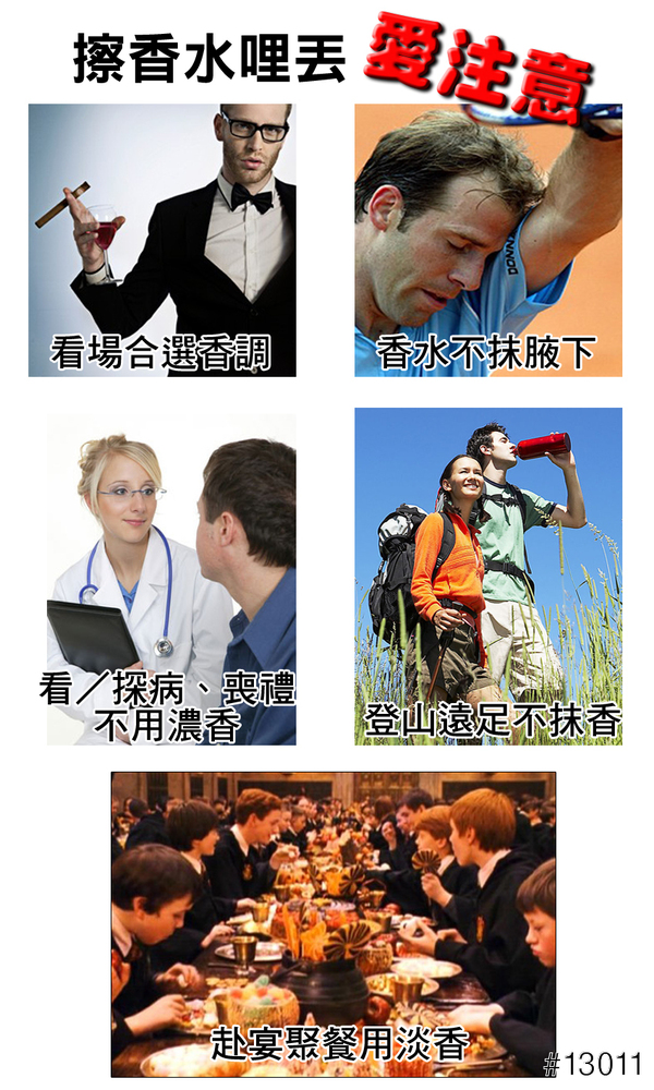 使用香水應該依場合而定,如上班時應選用低調沉穩的東方木質調,活潑的柑橘調則留待戶外活動使用,不然容易讓人覺得你不夠專業。