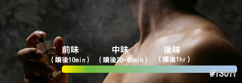 除了香調,前、中、後味也是選購香水的依據之一,前味是指噴香水後10分鐘左右的氣味,此時香氣最濃烈,還帶些微酒精味;中味則是噴香水後30分至40分鐘散發的味道,這是香水真正的氣味,也是它精華所在,緊接著就是混合使用者自身體味的後味,通常使用溫和的木質調或動物香精,營造出若有似無的餘香,香氣持續最久。