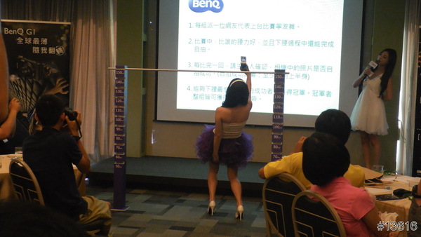 我的勁敵蓁蓁也卯起來下腰脫了高跟鞋,經過激烈的廝殺後,下到60cm,我真的彎不下去拉X'O