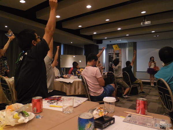 再來就是問答時間了,主辦單位準備了許多小禮物要送給大家~每個人都賣命的搶答,還拿娃娃使力的甩,選我選我啊~~~可惜苗苗拿了阿基獅跟另外一BenQ獅甩來甩去都沒被選到QQ