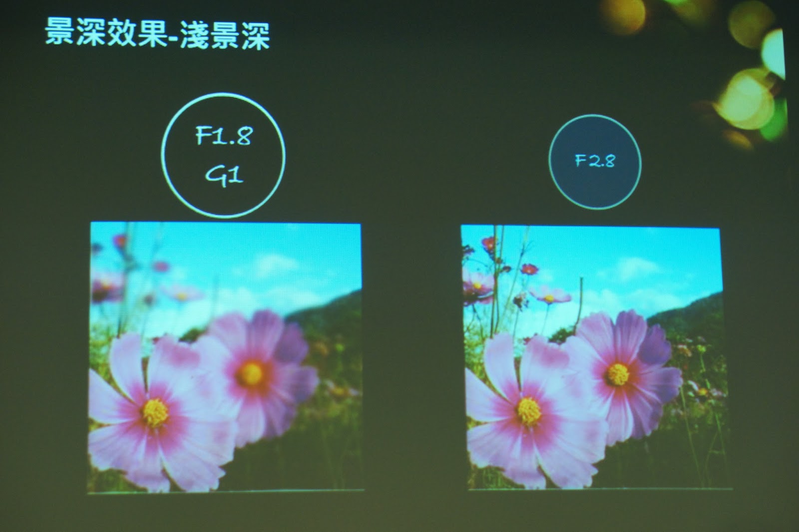 另一個賣點也有印在機身正面,G1用上世界上最薄相機模組,以及F1.8大光圈以及近期必備的1080P錄影