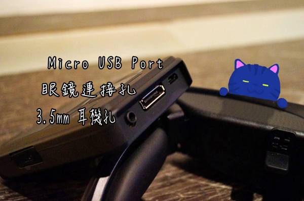 ▲接著看到的是遙控器的底部,在底部共有一個 3.5mm 耳機孔,和 BT-100 智慧眼鏡本體連接的連接孔,還有一個 Micro USB Port,當天我問 EPSON 工作人員是否可以外接鍵盤滑鼠,工作人員是說不確定行不行,但可以試試看! 不過現場卻沒有線材可以轉換好可惜QQ