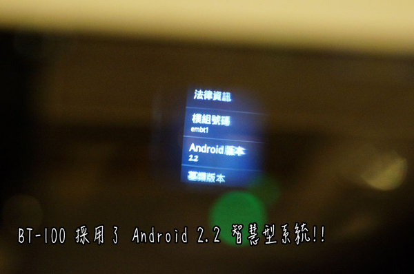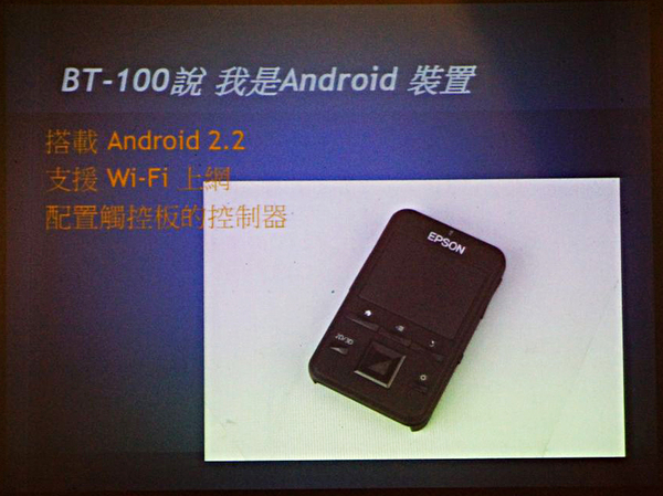 ▲BT-100的作業系統採用的是 Android 2.2,以智慧型主打的話這是稍稍有點過時了,希望 EPSON 團隊能盡快推出至少到 Android 2.3 的更新檔! 不過我實際使用起來還是蠻順暢不卡頓,所以這主要影響的是使用者爽度問題了,呵呵!