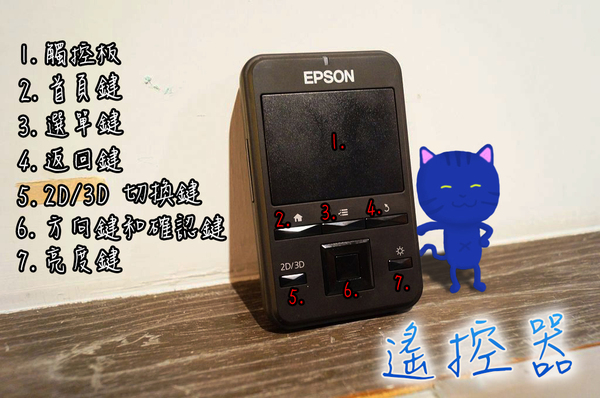 ▲這個就是 BT-100 的遙控器,因為眼鏡只是提供畫面,所以操作就得靠它拉,上方那一大塊黑色區域就是觸控板,觸感類似目前筆電產品內建的觸控板一樣,因為 BT-100 內建 Android 作業系統,所以在觸控板下方就可以看到 Android 系統常用到的首頁鍵、選單鍵、返回鍵,在選單鍵下方的則是四向方向鍵,可以用來控制選單上下左右移動,被方向鍵包圍的則是確認鍵,功能就類似使用智慧型手機時用手指點下螢幕的功能。在方向鍵的左右兩側分別設計了兩個快捷,因為 BT-100 支援 3D 顯示,因此左邊那個按鈕就是讓使用者可以快速切換 2D/3D,3D的效果非常真實,Jason 也強調 BT-100 是「自然」的 3D,一開始還有點無煞煞甚麼是自然的 3D,但實際戴上 BT-100 瀏覽幾部 Youtube 上的 3D影片就完全能夠理解了! 前景與背景的距離感十分明顯,大腦完全被科技給欺騙了XD 至於方向鍵右邊的按鈕則是方便使用者看影片時調整亮度用的亮度鍵。