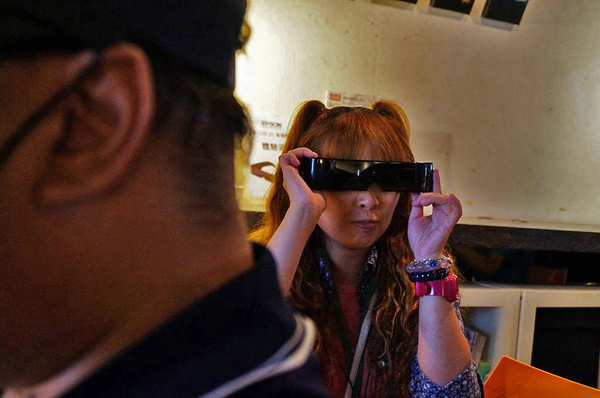 ▲鏡片前方的深色遮片可以拆下來,這樣子視線會更加明亮更易於與周遭環境互動,只是這樣看影片時就比較沒有電影院的感覺,所以還是要適時使用囉!