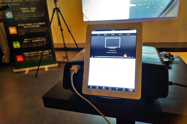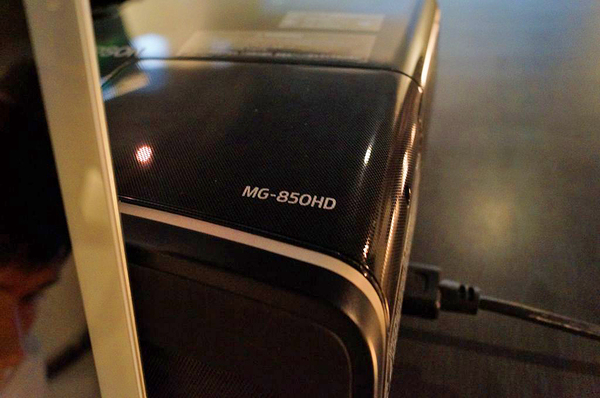 ▲因為內建喇叭,所以除了單槍功能之外它也可以外接 IDevice 當作音響來使用哦,那天在體驗 BT-100 時工作人員就用 MG-850HD 搭配 IPAD 撥放音樂炒熱氣氛,真是享受!