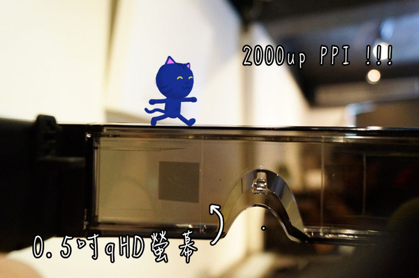 ▲在兩片鏡片之中各嵌入了一個 0.5吋的 TFT 螢幕,這兩塊螢幕的解析度都是 960*540(qHD),雖然不是目前智慧型手機主流的 1280*720(HD)解析度,但是想想這片螢幕比起手機小了許多只有 0.5 吋,卻可以塞入這麼多像素點,我回家算了一下,每單位吋像素(PPI)大概到了 2202.9,遠超過人眼可以辨識的程度,真是不得不佩服 EPSON 的實力,而我實際看過後畫質的確很細膩,不容易看出像素格子,感覺就像坐在電影院貴賓席一樣清晰不被干擾!