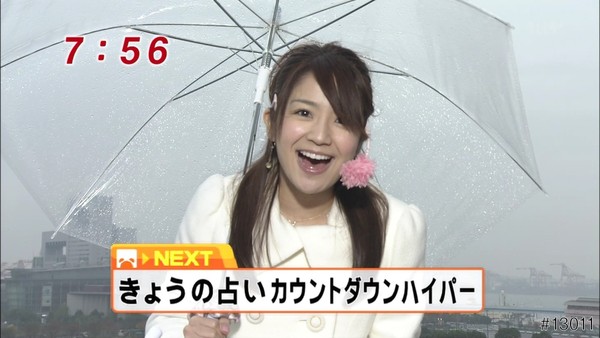 曾為上智大學校內選美亞軍的杉浦友紀,一畢業就進NHK福岡放送局工作,後來調到名古屋主持藝文節目,杉浦的超胸G奶,讓名古屋地區的男性為之瘋狂,收視屢開紅盤。NHK總部注意到她的潛力後,今年起就讓杉浦坐上全國性的主播台,主持晨間新聞,收視率如坐火箭般飆升,足見大型木蘭飛彈的厲害。可惜為了維護NHK嚴肅的形象,杉浦似乎被下了封奶令,每次上節目都包緊緊,日本觀眾只好死守銀幕,期待哪一天「守得雲開見月明」。