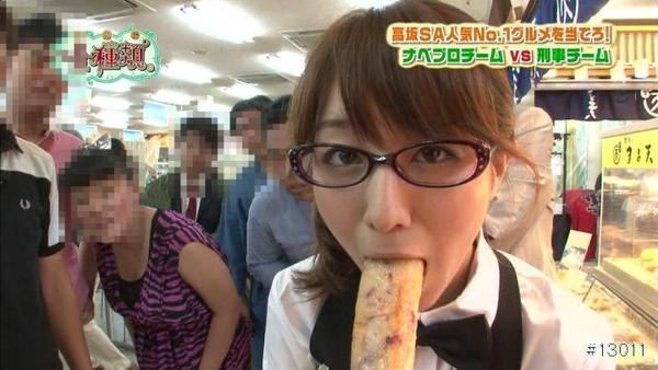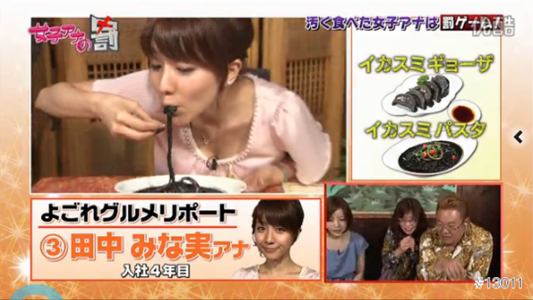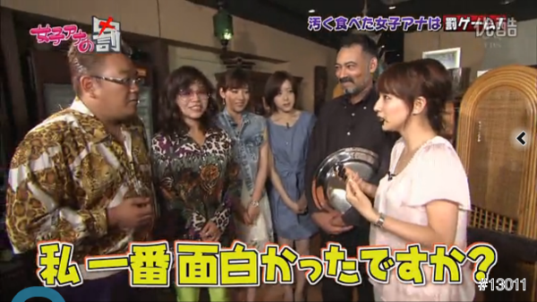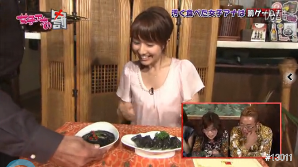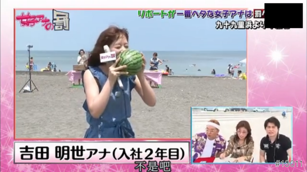例如下面的這集,就是假借日間美食節目之名,叫不知情的女主播們吃一些吃相很難看的食物(日本人真的好變態啊)。