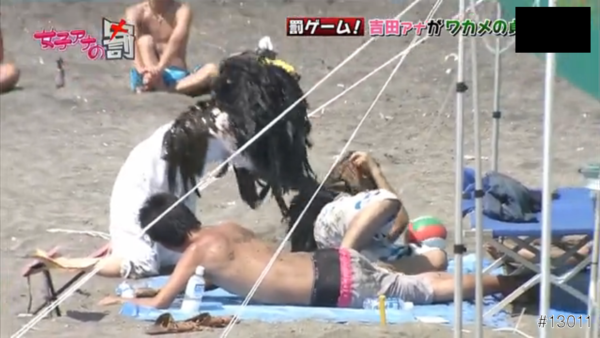 ▲甚至在大熱天披著海帶扮貞子…當初怎麼不去富士電視台乖乖當偶像主播就好了呢?