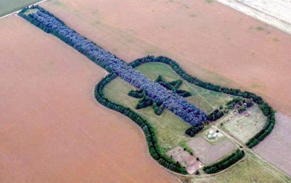 森林大家都看過,不過你看過長的像吉他的森林嗎?阿根廷藝術家Pedro Ureta就花了35年,把自己的家變成了讓森林環繞而成的吉他造型,只要做飛機從上空經過,就能看到一個由綠油油的樹木組成的吉他森林。