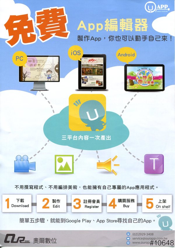 5. 免費的OurApp軟體是佛心來的, 另外年底前上架 Itunes App Store 及 Goggle Play,奧爾數位每套只收 NTD3000, 有需求的網友真的可以考慮這物超所值的服務