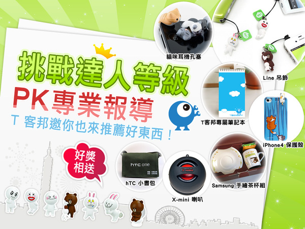 以推薦好東西為主旨的 T 客邦在這三年來,也陸續報導了許多新奇有趣經典的 3C 產品,不過相信在我們廣大的網友中一定也有厲害的人,不管你是美食達人還是旅遊專家,或是 3C 高手都歡迎你來挑戰,只要把你覺得優秀覺得好的東西推薦給我們,就有機會把多項好禮帶回家。