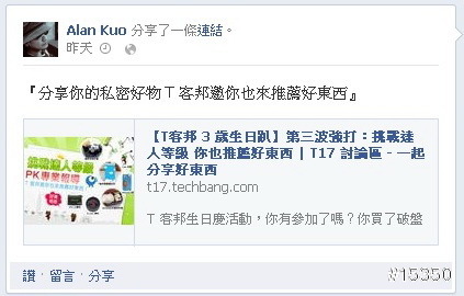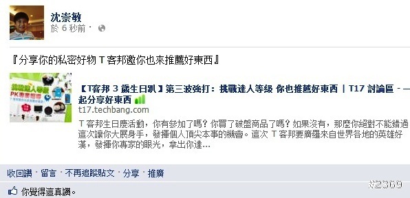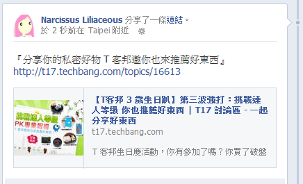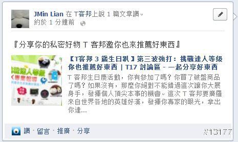 『分享你的私密好物 T 客邦邀你也來推薦好東西』我已經分享活動