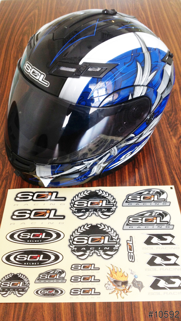 所以經過一番的尋尋覓覓,終於入手了『SOL SM-1 天劍 黑藍色 可掀式安全帽』,除了可掀外另外就是名稱很霸氣外加安全帽的彩繪樣式,SOL廠商的彩繪帽樣式真的都不錯,龍王、天行者、獨角獸等等多款都另人難以取捨,但最終想換頂全罩暨可掀式式的安全帽,還是以天劍為最終入手款,而且全罩裡內藏墨鏡真是太炫了,也許下次再換時仍會考慮這家廠商的,也大力推薦大家可以入手唷,絕不是因為先前參加該廠商的FB活動按讚,也幸運抽到限量貼紙的原因唷(≧▽≦)