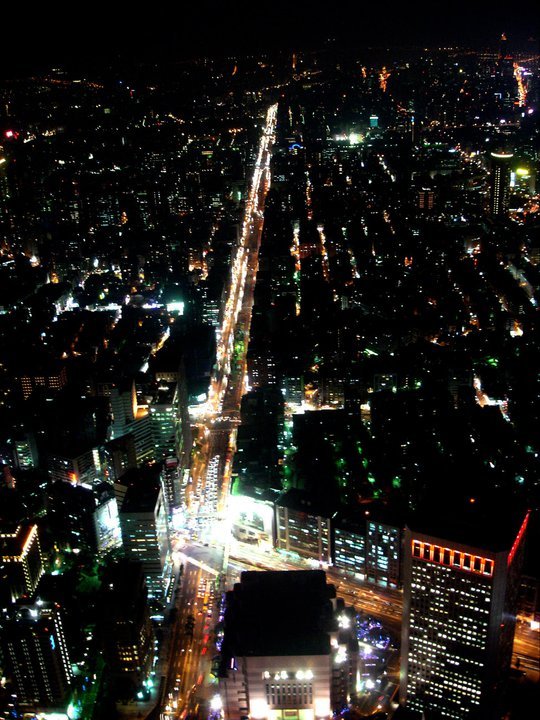 遠眺整個西部台北市,可以找的到仁愛路,樹種的比較多比較看不到車流。