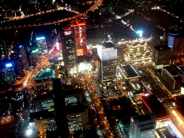 這是往西邊俯瞰台北市的信義路和基隆路交叉口,可以看到台北國際會議中心。
