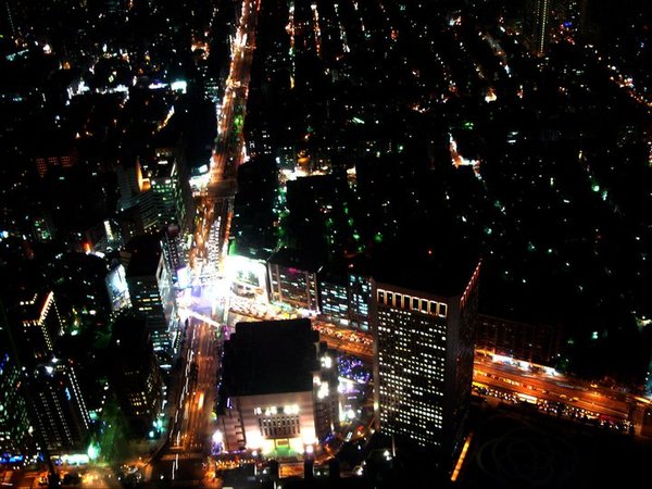 往西北方看,可以看到市政府轉運站,忙碌的忠孝東路和基隆路。