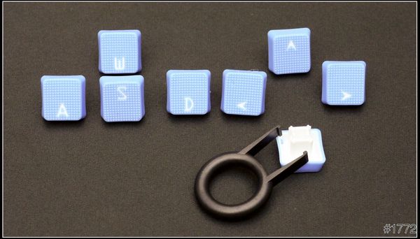 **8顆可替換式鍵帽與拔鍵器