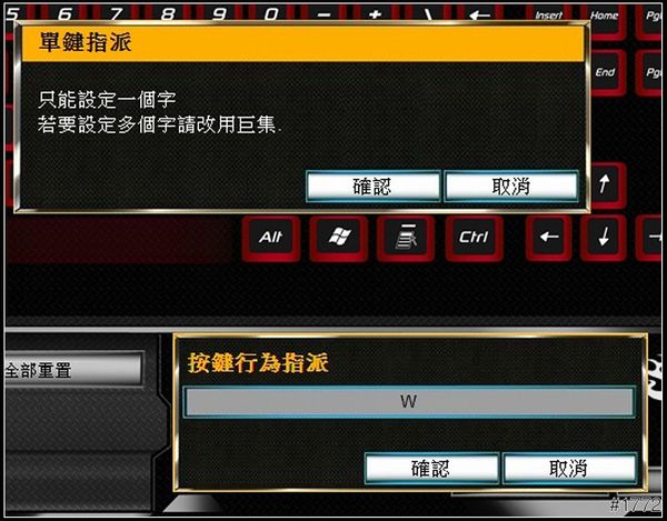 ▲單鍵設定(就是把某鍵任意變更為另一個鍵;如果多輸入會出現警告訊息)