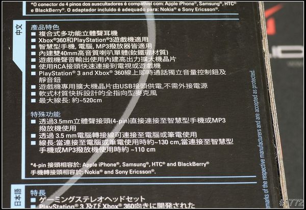 • 接頭: 1x 4-pin,3.5mm接頭(TRSS)