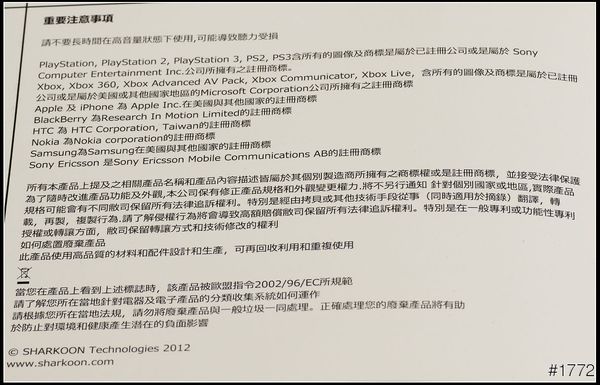 ▲重要注意事項(我也覺得第一項極為重要,請不要長時間在高音量狀態下使用,可能導致聽力受損)