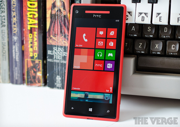 ▲ hTC 8X, 4.3 吋螢幕,720P 解析度、 Qualcomm S4 MSM8960, 1.5GHz 雙核心處理器、1GB RAM、八百萬畫素相機,搭配 ImageChip。(來源:TheVerge)