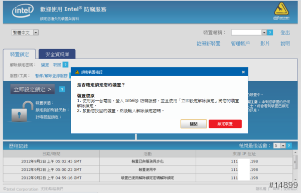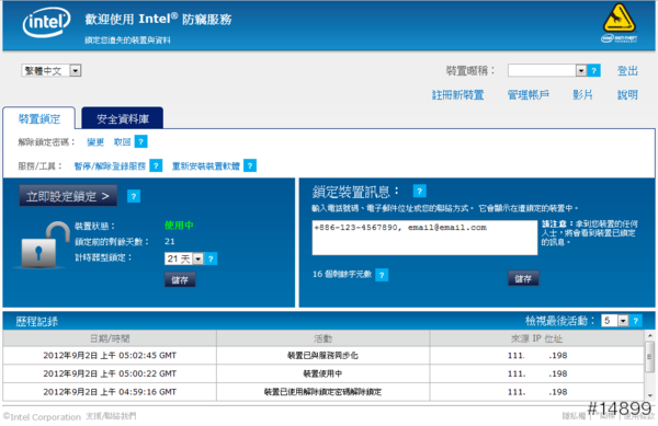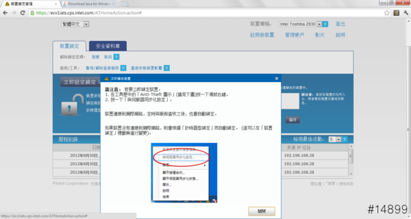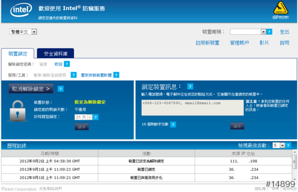 以上步驟進行完就成功將此電腦登入到Intel Anti-Theft的伺服器中囉~