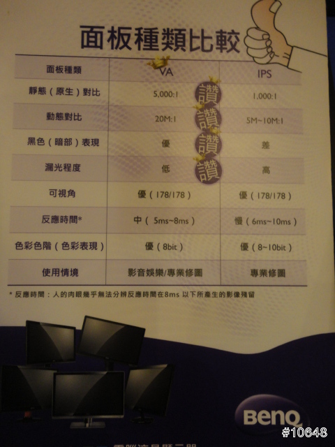 展示區佈置著3台不同面板 VA (BenQ), IPS (Dell), TN (Samsung)的顯示器供網友們比較與BenQ VA面板的不同之處