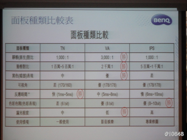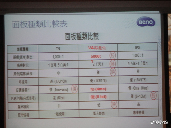 緊接著由BenQ產品行銷部經理Lillian Chiu為網友說明[為什麼要VA面板?面板比一比]