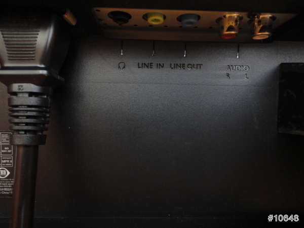 顯示器背面左方由左至右為電源線, 耳機孔, Line in, Line out, 音源輸入埠