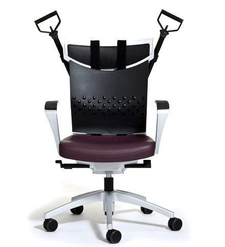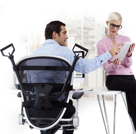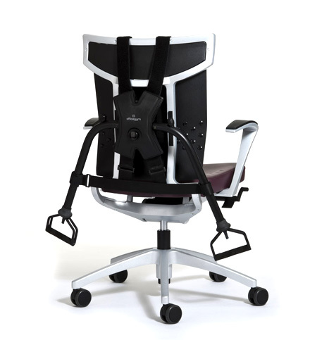 OfficeGym 的設計概念是結合 "three-dimensional exercise" 和 “principle of rotation" 。可以直接安裝在辦公椅背部,用來針對胸部、肩膀、手背、背部腹部和腿部等部位進行鍛煉。不過一組OfficeGym售價193美元可不便宜,大家還是努力一點把屁股離開椅子,來動一動吧!