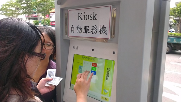 ▲ 在租車點旁邊就有 Kiosk 服務機器,可以直接在這邊加入會員,然後就可以使用悠遊卡來租車。加入會員是綁定手機的,只要手機跟悠遊卡就可以加會員,一分鐘可以搞定