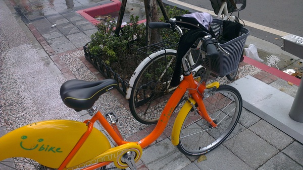 ▲ 「U-Bike」的車子都有著大大的微笑標誌,讓人一眼就能看出是他們的車,不怕被大家偷拿回家騎(因為是路上突然興起想去騎車,照片都是用 OneX 拍攝。)