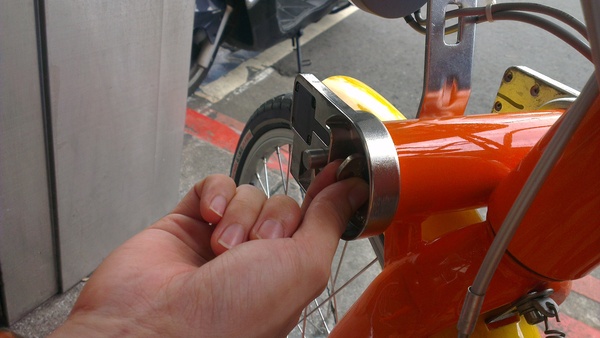 ▲ 接下來再到前輪左方轉鑰匙鎖上,然後把鑰匙拿起來放身上就ok囉,記得到時候解鎖也是一樣的方法,只是反過來。