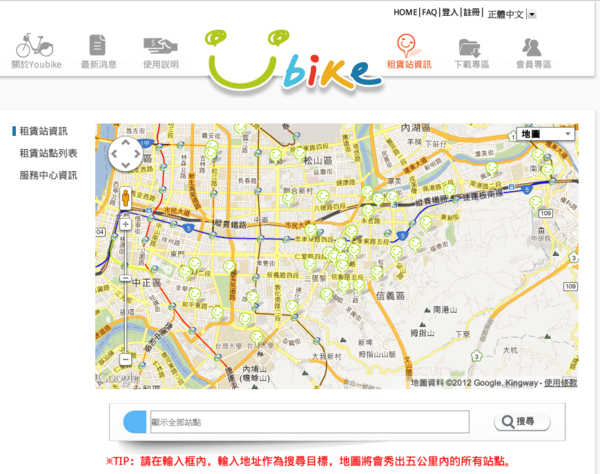 ▲ 相關租車點可以在「YouBike」網站上查詢,在上次出大包之後相信它們現在皮繃得很緊(≧▽≦)(來源:Youbike)