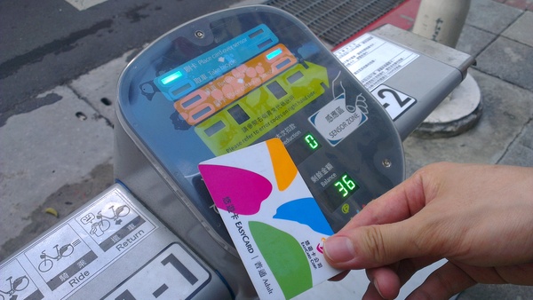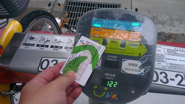 ▲ 加入會員之後,拿悠遊卡在車柱的感應區給它逼一下,車柱會顯示悠遊卡的剩餘金額。