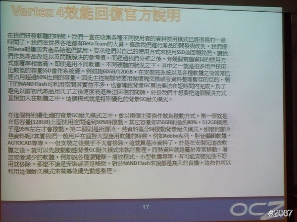 OCZ的SSD主控制器利用待機的時候來整理資料,讓SSD的速度回復