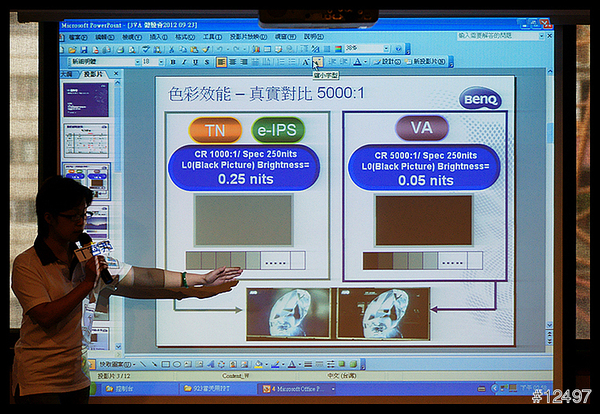 ※投影片講的內容,看下面的圖應該很清楚吧?可以看到很多TN所沒有看到的細節。立體感也不同,你可以看到房間內部,似乎深遠了一點。仔細看VA的表現,還可以看到窗戶灑進來的月光。
