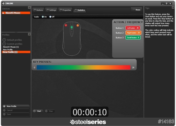 自我測試功能:這挺有趣的,可以記錄你在某一段時間內使用左鍵、右鍵、中鍵的次數。
