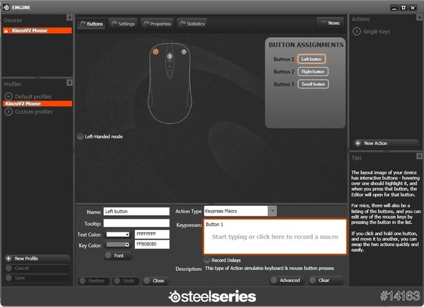 有3個按鍵可以自行設定(左鍵、中鍵、右鍵)。